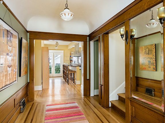 Irvington Craftsman: She is a Beauty. Situated on arguably the best street in Portland this 1911 built home has been beautifully remodeled & moved forward retaining the original character. Fabulous kitchen and baths. Handsome large rooms throughout. 4 levels with unfinished basement. Finished 3rd floor. The woodwork is truly stunning. 2 fireplaces incl one in the sublime master suite. Best porch on the street! Private landscaped patio. [Home Energy Score = 3. HES Report at https://rpt.greenbuildingregistry.com/hes/OR10080533]