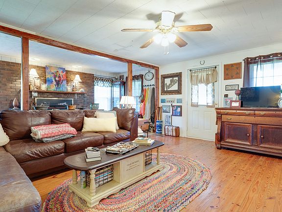 ~~$5,000 flooring and paint allowance to buyer~~Gorgeous setting surrounds this all brick home on 1.77 +/- acres. Hardwood floors in the main living area, with replacement windows installed, wood burning fireplace in living room, large kitchen with eat-in area and also a bar, with a finished bonus room upstairs. Storage building outside, large established shade trees, a deck and covered porches around half the home let you enjoy the outdoors all year long.