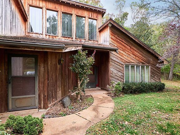 Unique property on almost 3 acres in High Ridge, MO! This is your opportunity to fix and flip, tear down and rebuild, or rehab and move in! Home has 2 bedrooms, 2 baths, and spacious kitchen with island. Living room with woodburning fireplace is spacious with large picture window. Dining room also has woodburning fireplace. Separate room used as office. Workshop area with work bench and plenty of shelving. 3-car garage and beautiful level lot! Home being sold as-is.