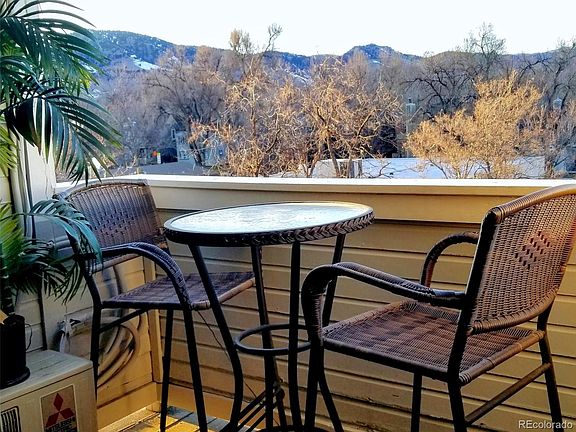 TOP FLOOR living on the east end of Pearl Street in downtown Boulder! 1 Bedroom Condo has a large 220 sqft loft area with proper staircase and sky light. Features include a South-facing Deck with Flatirons Views & North-facing Deck with views of Mt. Sanitas, Wood Burning Fireplace, Efficient A/C, marble floors in bathroom. Covered Parking and Storage Locker Under Building. Elevator. Private Bike Locker to be installed. HOP Bus stop at building, healthy eatery in complex, and next to creek and Spruce Pool. Well run HOA with lots of reserves. Living on Pearl Street with all that Boulder has to offer!