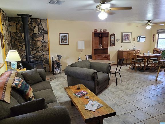 Very well maintained 3 bedroom 2 bath home located in Sunrise Country Estates just 5 minutes from shopping in Silver City. The owner has installed several upgrades including a new hybrid furnace that can run as a natural gas forced air furnace or as a heat pump . Ask your realtor to printout the list of upgrades. Nestled on 2.6 acres with a very secluded feel. There is RV access plus a large carport in addition to an attached 2 car garage and storage shed. Grow your own fresh veggies in the fenced garden. Just minutes to Dragon Fly Trail and the Gila National Forest. The spacious covered patio in the back is very private - a great place to entertain family and friends.