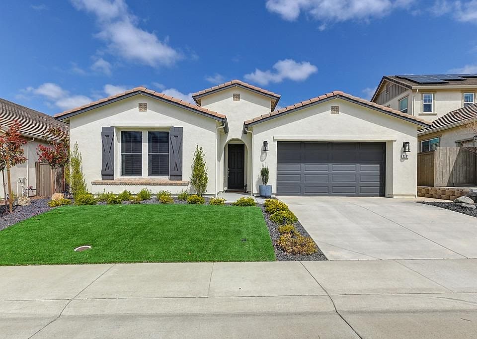 Fall in love with this single story gem in Rocklin's popular community of Whitney Ranch. Situated on a premium lot and backing to a greenbelt, the home was built in 2017 by Taylor Morrison, and remodeled/upgraded in 2021 with the installation of a new, heated pool and spa on site, by Premier Pools, gas fire pit and decking, and pergola. You will love your own private oasis. Plumbed for pool solar. The home has an owned solar system for the house electric. Tankless water heater and whole house fan. Backyard living area is plumbed with gas to accommodate an outdoor barbeque. You will enjoy an open great room floor plan in the kitchen, family room and dining area, soft closing cabinets and drawers, and plantation shutters throughout, and a wet bar with a wine refrigerator. Designer touches including farmhouse light fixtures, decorative shiplap on the prominent primary bedroom, hallway and half bath walls. Custom barn door between the primary bedroom and bathroom. New interior and exterior paint in 2021. Low maintenance landscaping includes artificial lawn in the front yard with drip irrigation for plantings. Epoxy floors in the garage has your vehicles parking in style. HOA dues includes The Ranch House pool and clubhouse. You will love what this residence has to offer!