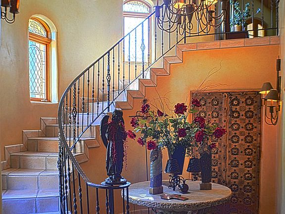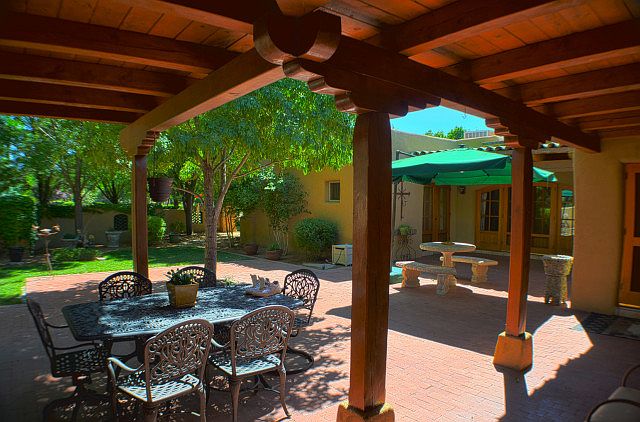 CROWN JEWEL - LOS RANCHOS DE ALBUQUERQUE This one-of-a-kind custom, adobe constructed, masterpiece is only rivaled by the extraordinary 3.2 acres of the impeccably landscaped slice of paradise. This stylish gated Hacienda offers only top-of-the-line features and components including limestone arched ceilings, Italian stone flooring, wood windows, Venetian plaster and faux-finished walls, Viking and Sub-Zero appliances, built-in hand-crafted cabinetry throughout, granite counters, several hand-picked antique imported doors and accents, in-floor radiant heat, pond and several creative water features. The peaceful and serene estate offers more than 2,400 square feet of covered portals and brick patio areas for exceptional outdoor living, grilling and entertaining. You are welcome to experience the tradition of Southwest living in this exquisite property that will truly epitomize The 'Land of Enchantment'.