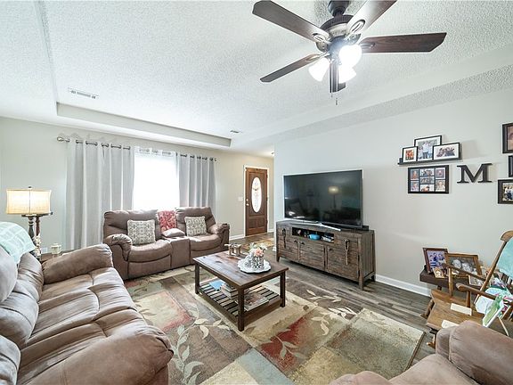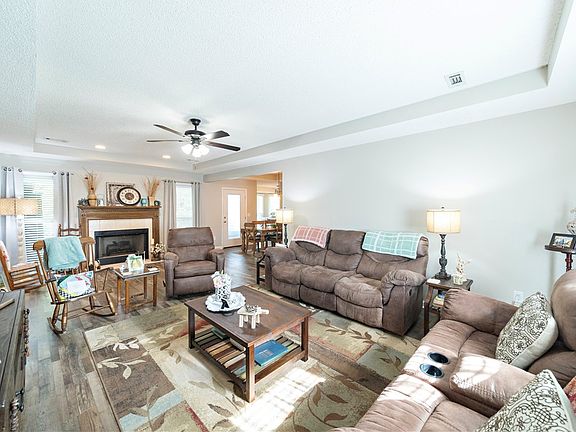 - Description: fireplace, Tray Ceiling,Flooring: Plank,Simulated Wood