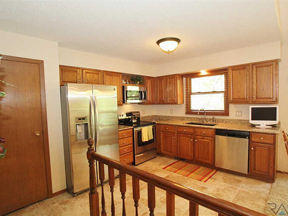 Very Well cared for Ranch Walk Out on Eastside Neighborhood 1 Block to Morningside Park and Close to Harvey Dunn Elementary. 3 Bedrooms on Main Level. From the moment you drive up you will feel the Love. The front landscaping feels like a park. Maintenance free vinyl siding. Newer Windows, Newer Furnace & A/C. The Living room has a Vaulted Ceiling and newer carpets. The kitchen offers a Pantry, Granite Counters, Stainless steel appliances, Tile floor, updated light fixture. Andersen sliding glass door leads you to a deck that feels like you are in a tree house with steps to the backyard. 3 Bedrooms on this level. The master has a pass thru to the bathroom. The lower level offers a large Family room with a Brick Fireplace and shelving. The family room walks out to the Patio. The family room is plumbed for Wet Bar in the corner. 3/4 Bathroom. Future Potential for a 4th bedroom (just add an egress window and finish). Large Mechanical/Laundry rm with big Double sink and loads of storage