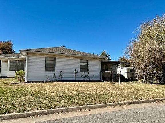Large fenced corner lot, 4 Bedrooms, 1 Full Bath and 1 half bath, large covered patio and a workshop in the backyard. This home has a huge family room expertly built in 1984 with closets galore. New windows were installed in this addition 3 years ago. In the converted garage bedroom, there is a wall of cabinets for any and all uses. The washer and dryer is located in this bedroom also. Other features of this home is an On Demand - Hot Water Heater, New Roof and decking 11/13/2023, newly replaced Compresser Unit - still under warranty and the saddle connection to the City was replaced in the backyard. Come take a tour!!