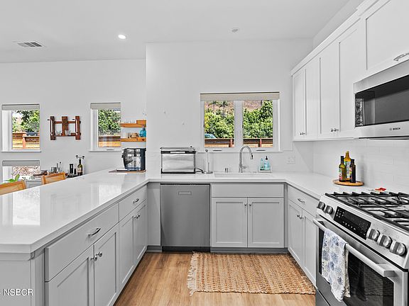 Turn-Key hidden gem for First Time Home Buyers or Investors! Located steps away from the beach. This gem is a modern-style townhome with Central Coast ocean views. The unit boast 3 bedrooms, 2.5 baths with 2 car garage. Exterior has a modern finish with the interior finishes including quartz counter tops, custom white and grey cabinetry along with chrome and nickel finishes. Custom laminate floors, upgraded custom electric blinds, custom built-in electric fireplace, custom landscape with built-in deck and A/C unit. Conveniently located near schools, shopping, and freeway access enhancing its appeal as a perfect Central Coast residence. Don't miss your opportunity!!!