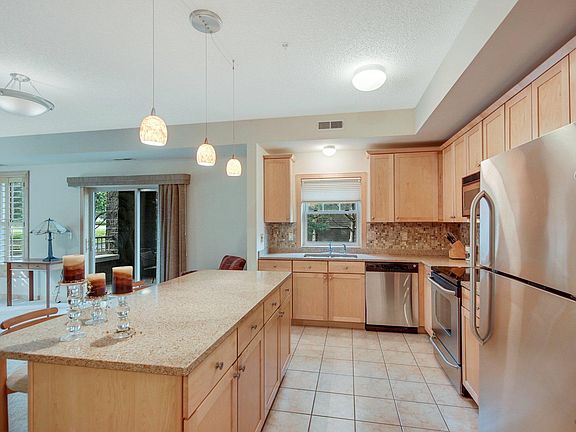 West facing end unit - 1st floor - lots of nice features including walk-in master shower, kitchen back splash & granite counters, large island & stainless steel appliances, underground, heated parking. New landscaping is being installed by association.