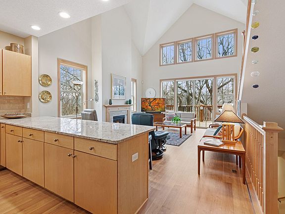 Discover this exceptional end-unit townhome in the sought-after Villages at 9-Mile Creek! Impeccably maintained and designed to impress, this home offers stunning views of 9-Mile Creek and Moir Park. Enjoy the ease of main-level living with a spacious cedar deck, an open floor plan, vaulted ceilings, and abundant natural light. The upper level features two bedrooms, a loft, and a versatile bonus room. The kitchen boasts granite countertops, stainless steel appliances, and a stylish tiled backsplash. Recent updates include a newer appliances and flooring.