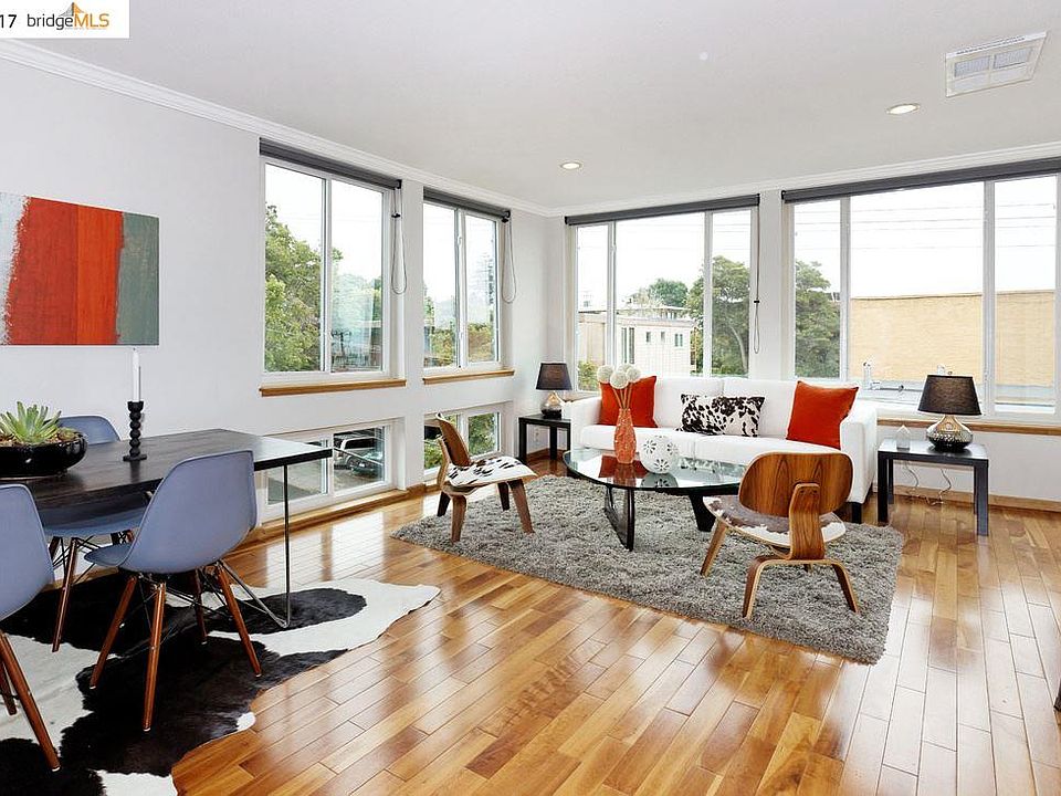 Simply stunning one bedroom condo located just north of UC Berkeley in the Gourmet Ghetto. Chic updates including custom maple cabinets, black granite counter tops, pristine cherry floors, recessed lighting, frosted pocket doors, walk-in closet, updated bathroom. Floor-to-ceiling windows with views of the sprawling Berkeley Hills, tree-lined street, and SF Skyline. Enjoy sunsets from the private balcony. Secured off-street parking, storage, and on-site laundry.