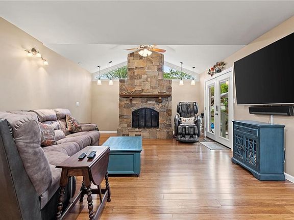 LEAWOOD CHARMER!!! Well Maintained, spacious home in Blue Valley Schools in the coveted VERONA GARDENS neighborhood. Durable Hardie board siding on exterior! Gleaming hardwoods through most of the first floor, large living room and dining room perfect for entertaining. The kitchen has a nice layout with a peninsula, eat-in area, granite counters + granite tile backsplash, double ovens, cooktop, plus pantry. Main level laundry room! Home boasts large family room addition w/ vaulted ceilings, stone fireplace, newer doors to back patio. This home is so well appointed all you have to do is MOVE RIGHT IN! Newer Thermal windows thruout. Removed all popcorn ceilings! 4 spacious bedrooms upstairs plus bonus room for office or playroom. Walk-in closets in 3 of the 4 bedrooms. Newly refinished lower level has well-lit rec room and STUNNING full bathroom! **DON'T MISS the backyard!** High-end swimming pool w/ diving board, water fall, heater, & automation. Lovely Stamped concrete patio surrounds pool area, privacy fence and plenty of yard to roam - JUST IN TIME FOR SUMMER! Newer Driveway is double wide plus circle drive for additional parking. Garage has epoxy coated floor. Homes like this don't last long!