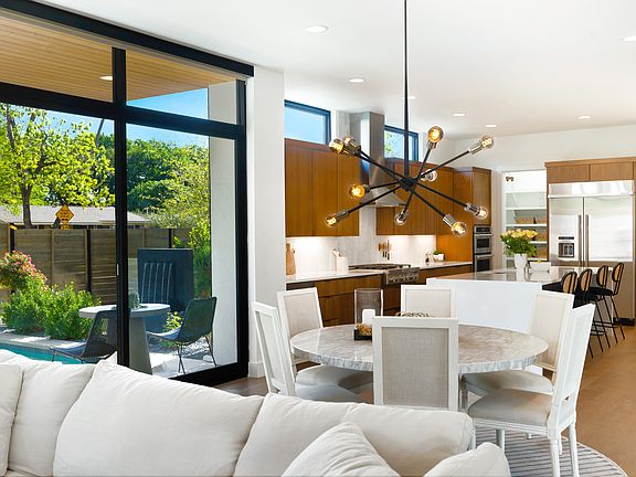 Welcome to your contemporary oasis in the heart of Tarrytown! This exquisite home boasts unparalleled elegance, superior craftsmanship, and an abundance of upscale features that redefine modern living. This stucco masterpiece with a sleek metal roof stands as a testament to architectural brilliance. As you enter, you're immediately struck by the grandeur of floor-to-ceiling Andersen doors and windows, flooding the home with natural light and offering breathtaking views of the surrounding landscape. The heart of the home is the gourmet kitchen, a chef's delight equipped with a spacious center island crowned with a stunning waterfall quartzite countertop. Custom cabinets, soft-close drawers, undercounter lighting, and a generous pantry ensure both style and functionality. A full appliance package, including a wine fridge, caters to every culinary need, while the adjacent dining area beckons for memorable gatherings. The home exudes warmth and sophistication with gorgeous white oak floors that flow seamlessly throughout. The luxury primary bathroom beckons relaxation with a soaking tub, spacious shower, and a huge walk-in closet, offering a tranquil retreat at the end of the day. Step outside to your private paradise, where a sparkling pool awaits, surrounded by lush landscaping and a covered patio. Entertain with ease as you grill up culinary delights in the built-in outdoor kitchen, complete with a sink and ample counter space for effortless al fresco dining. With a floorplan designed for modern living and quality finishes at every turn, this home is a true masterpiece. Experience the epitome of living in Tarrytown - schedule your private tour today and make this dream home yours!
