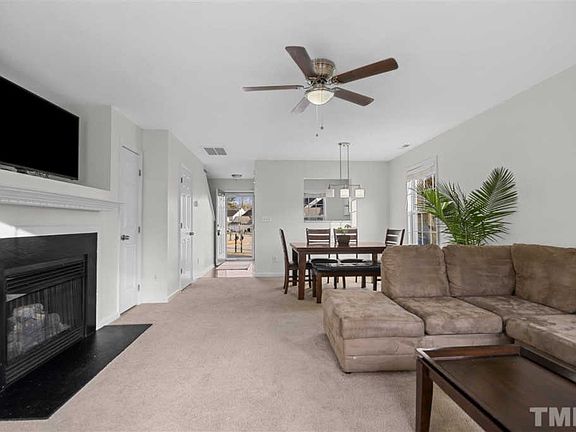 OFFER has been ACCEPTED 12/18 Sunny bright, clean, spacious 2 bed, 2.5 bath corner townhome in Hedingham. Freshly painted white walls, beautiful kitchen countertops, upgraded lighting. Living room fireplace and peek-thru kitchen. Cathedral ceiling in master, both rooms have en suite baths, walk-in closets, Extra long driveway. Access to Neuse River walking trails, golf community in Raleigh, 20 min to downtown and RDU airport. Fridge conveys.