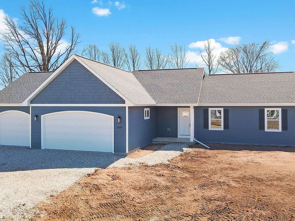 Stunning split bdrm ranch featuring volume ceiling and an open floor plan that exudes elegance & comfort! This light and bright home is flanked with vinyl plank flooring throughout the main living area. The sprawling GR is washed with windows and anchored by a stone gas FP. GR adjoins the kitchen creating cooking and conversation. Stocked w/cabinetry the applianced kitchen offers an oversized island. Adjacent to the kitchen the dining area is surrounded by windows and a sliding glass door w/ scenic views of the tree line backdrop. The primary suite includes tray ceiling, walk-in closet and dual vanity. Two ample sized bdrms, common full bath, and oversized mudroom with bench and FF laundry complete the main fl. Additional features include: 3 car garage, LL stub for bath and egress window!