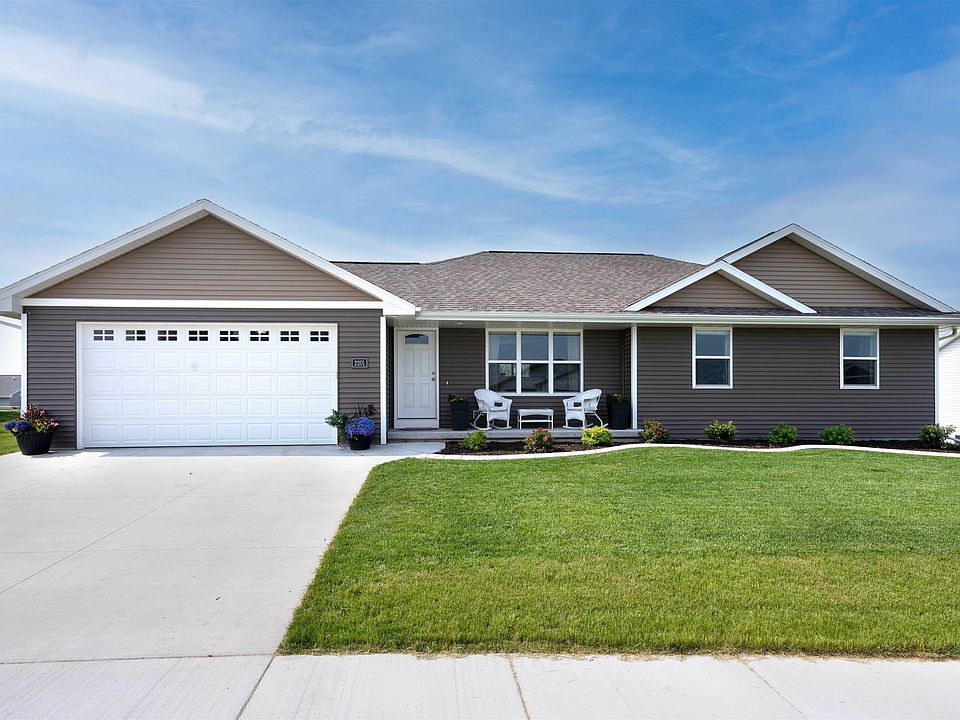 Looking for a beautiful new ranch that has the lawn, patio and landscaping done?Check out this great new build-ready for you to just move in that is conveniently located!Open concept with lots of light throughout.Large living room with modern electric fireplace that changes color and temperature to create the just right ambience.Dining area boasts a treyed ceiling and overlooks the stamped patio/backyard.Kitchen has a very modern feel with gray cabinets and lots of counterspace to prepare food/cook.Primary suite is spacious with a large walkin closet and full bathroom.Two additional good sized bedrooms with an additional full bath.The basement is a fresh canvas that has so much potential.The garage has enough room for 2 vehicles with some additional space for storage.Offers presented 6/26.