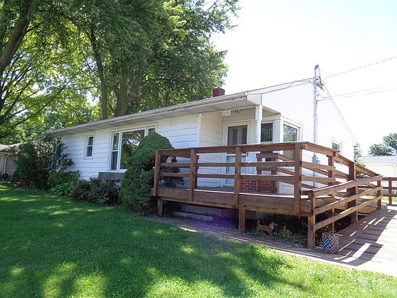 3 bedroom 1 bath ranch on corner lot with full partially finished basement. Basement is partially finished with shower, laundry, pool table and bar. Eat in kitchen. Main floor laundry. 2 stall garage with concrete driveway and extra storage shed with greenhouse in side yard. Low maintenance lawn. All appliances including stackable washer and dryer stay with home. Handicapped accessible! Home warranty offered.