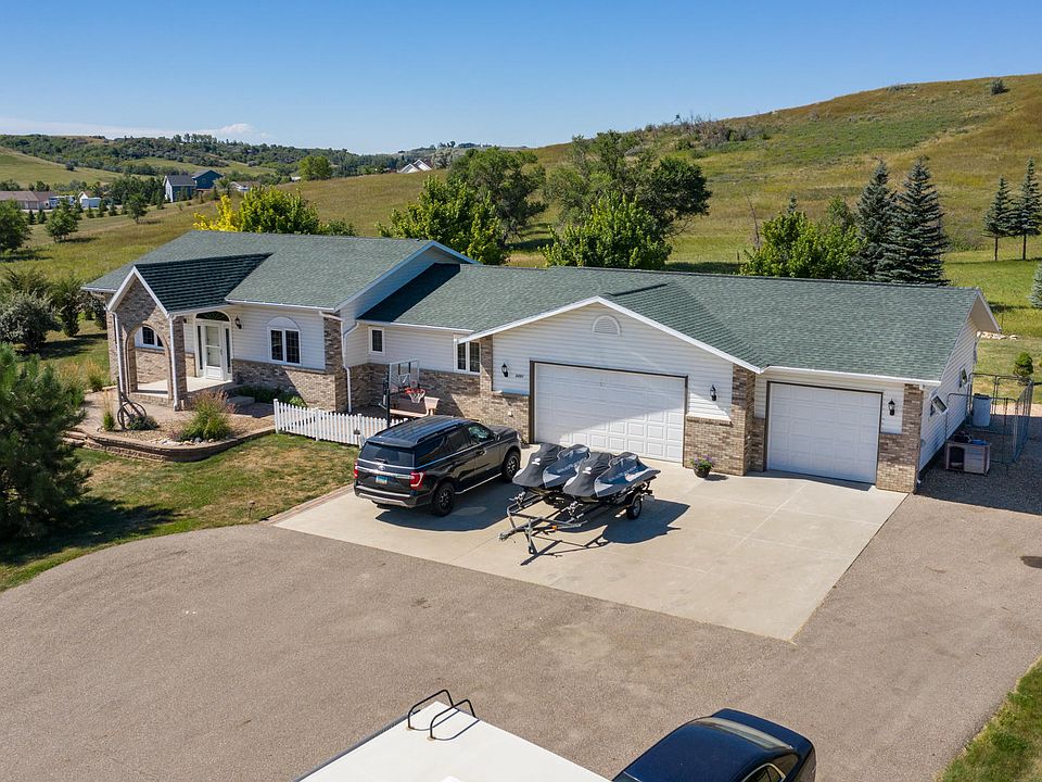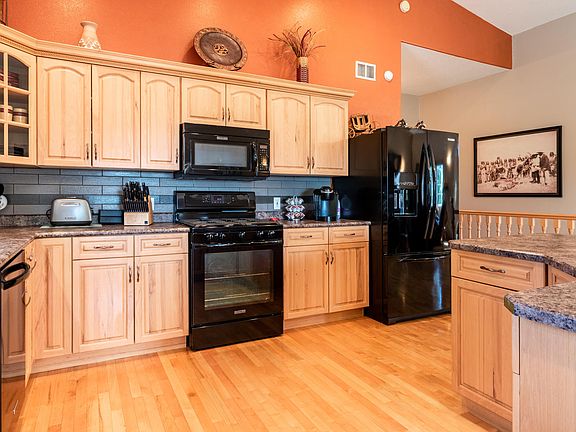 Spectacular Ranch style home on 1.6 acres at the end of a quiet cul de sac with a private backyard. Main level master bedroom suite with a private bathroom and main level laundry room. Tall cathedral ceilings over the dining room, Living room and Kitchen. Hardwood floors throughout the main level, beautiful cabinets and updated appliances. There is a large walk-in pantry around the corner from the kitchen. The basement is finished with three bedrooms. one of the bedrooms is non conforming, family room and 3/4 bathroom plus a cellar room for storing produce. The over sized attached garage is over 1,250 square feet and there is a 24' x 30' concrete slab poured for a future shop. Enjoy the peace and quiet of the country side on the maintenance free deck surrounded by tall mature trees just minutes from downtown.