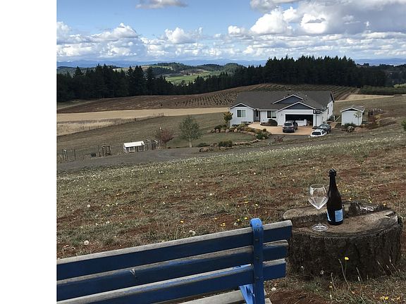 Property has volcanic/Jory soil, in wine country. Breathtaking sunsets & with-in 1 mile of 3 wineries. Mixed hillside orchard w/2.5 acres of pasture/garden area. Chicken coop, garage w/ built-in cabinets & an additional 12' X 9 3/4" storage shed. Rows of privacy trees have been planted.