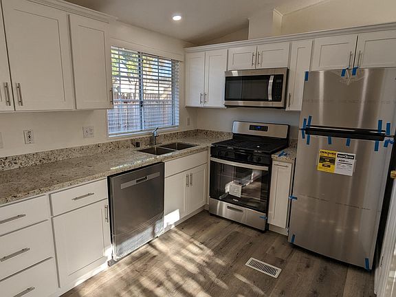 OPEN HOUSE Sunday 3/12, 2-5pm. Rent your very own two bedroom single family house with a large 2 car garage and large private driveway. The yard has a lemon tree, a palm tree, and a planter box for growing your own vegetables. The home is newly renovated. It has new floors, new granite counters, new stainless steel appliances, recessed lights, upgraded blinds. The home comes with a washer and dryer and has central heating. Small pets under 20 pounds are allowed. Location is walking distance to the Castro Valley Trader Joe's, and is centrally located within minutes of BART, 580, and 238. Water and garbage are an extra $100/month. No smoking. Tenant pays for gas and electricity. Lease is for 12 months.