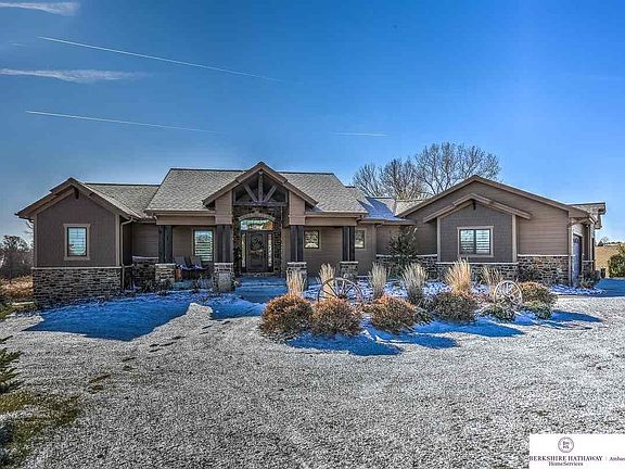 A rare opportunity to own this custom designed ranch home on over 20 acres backing to Mt. Michael in Elkhorn School District. This home features cathedral beamed ceiling in Great Room, large windows overlooking treed backyard, covered wrap around deck, Knotty Alder doors, engineered wood floors, sitting room off Master Bedroom, and extra large walk-in shower.
