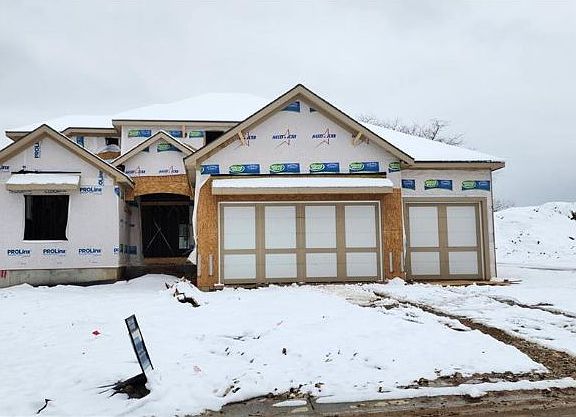 The Kinsley by New Mark Homes. Designed for the homeowner wanting lots of room to entertain guests, or just wanting to enjoy their space. This home highlights unique features, including dual laundry (one on main level and a 2nd on the upper); Main level Owner's Bedroom and Ensuite; Second main level bedroom with upgraded Oak Hardwood flooring; Upper level Loft for recreational room or office; and a Raised Covered Patio with Stairs. The Owner's Ensuite is sure to please with Freestanding soaking tub, frameless tiled shower, double vanity, and custom walk-in closet. Warm up on cold nights next to the stone to ceiling gas fireplace with custom base cabinets and shelving to showcase your personal style. Upper level features bedroom #3 w private ensuite. Bedrooms #4 and 5 share a Jack and Jill bathroom and individual walk in closets. Enjoy your backyard privacy with a tree lined view. Community Amenity Center is coming soon! Amenities will feature: neighborhood pool, pickleball courts, and greenspace. Community conveniently located close to hwy access, Lenexa City Center, Shawnee Mission Park, Athletic Fields, and more. This home is currently under construction with time to choose your finishes!