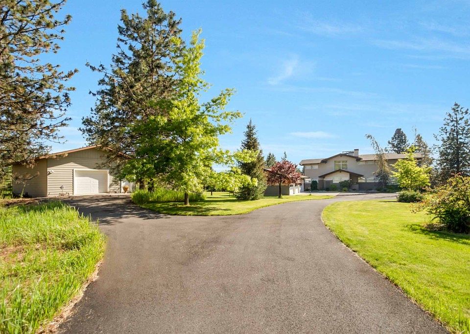 Live large in your country paradise! The gated entrance leads to a stunning Contemporary home situated on 5 acres, in sought-after Mead SD. Beautiful craftsman architectural details through out. The LR boasts soaring ceiling, new gas fireplace & built-in shelves. The large open kitchen is the perfect staging spot for entertaining open to the family room area & dining space, it creates easy access to the outdoors. Abundant windows throughout the house lets in natural light, serene garden views of the professionally landscaped yard and Mt Spokane. Elegant Master suite includes access to a private deck. The new spa-like luxurious bath boasts custom cabinets, walk-in shower, soaking tub, and radiant heat floor. Perfect home for multi-generational use. Each additional bedroom includes a private full bath. This showcase home has been meticulously updated inside and out with exquisite finishes and fixtures. Refinished hard wood floors, full spectrum neutral color interior paint, updated security system, Home wired for sound through out. Large detached three car garage with extra storage and an additional 24x32 finished heated shop for more toys.