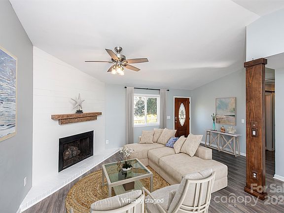 Rare find and completely updated 2 bedroom, one bath home, w/room to expand just steps away from Lake Norman in Bahia Bay. Could be your home away from home! Come inside to this open floorplan featuring a vaulted great room w/gas fireplace that is open to the dining room & kitchen; boasting open shelving, granite counters, SS appliances, & pantry with french doors. UPDATES: bedroom/bath/barn doors, fresh paint, gas logs, flooring throughout, tiled bath, appliances, light fixtures, cabinet hardware, deck, fencing, HVAC ('23), Roof ('17), extra parking & small watercraft storage & more. All within a 5-minute walk to the deeded/private community 1 acre lake access lot with a day dock, boat ramp, small watercraft ramp, and grills for only $75 in dues annually. Walk, bike, scooter or take a golf cart to shops - including Fresh Market, HomeSense, Ulta, Total Wine, Yoga, Orange Theory, Restaurants and more! Everything you could want is within 1-2 miles of the home with sidewalks & bike lanes.