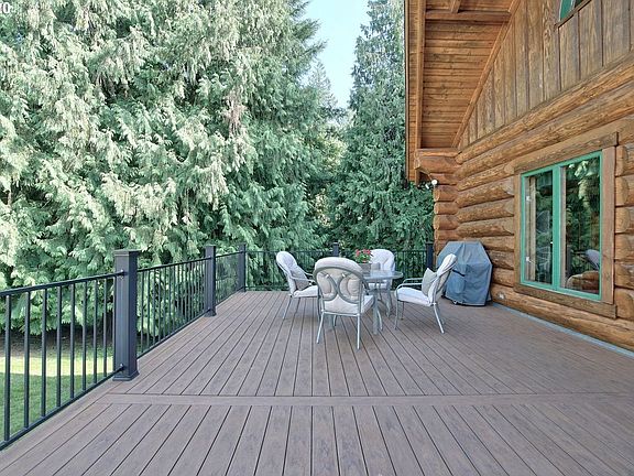 Charming log home in private treed setting. 2 homes on 2 tax lots, minutes to I-5. 2nd bedroom has double Murphy Bed & clawfoot tub. Home exterior: pressure washed, stained & clear-coated. Columbia River basalt natural gas fireplace w/heatilator. Hardwood floors, Pozzi windows & Trex decks. 25x50 covered RV parking. 2,400 SF cement floor shop w/ in-ground hoist, bathroom & lounge. Development potential. Raised bed garden, apples, pears & plums. Shown by appointment only. Home not seen from road.