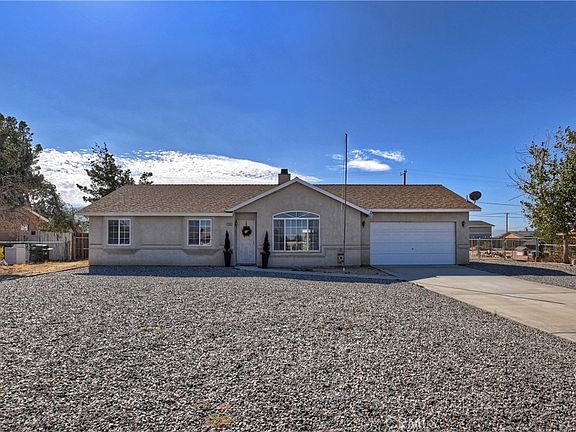Situated on nearly a half an acre near the heart of Apple Valley this clean three bedroom two bathroom home with mountain view is ready for new owners! Entering the home one will note a large living room with a lovely brick fireplace and gorgeous vaulted ceilings. The kitchen and dining area are located off of the living room and are appointed with newer stainless steel stove and dishwasher. Just down the hallway is a guest bath and two ample sized spare bedrooms. The primary suite is situated at the back of the home and features an en-suite bath. Walking through the slider door out to the fully fenced-in backyard you will notice a covered patio that includes a built in gas BBQ and is perfect for enjoying your morning coffee under and entertaining family and friends. Plenty of parking for several vehicles in addition to the RV parking alongside the home. Did I forget to mention the home has new carpet and the interior has been recently repainted? You will not want to miss this turn-key Apple Valley home!
