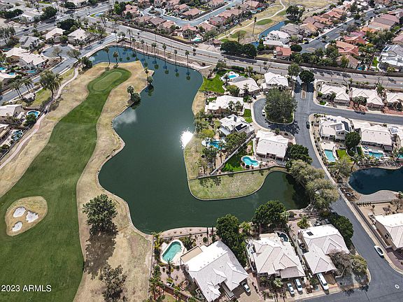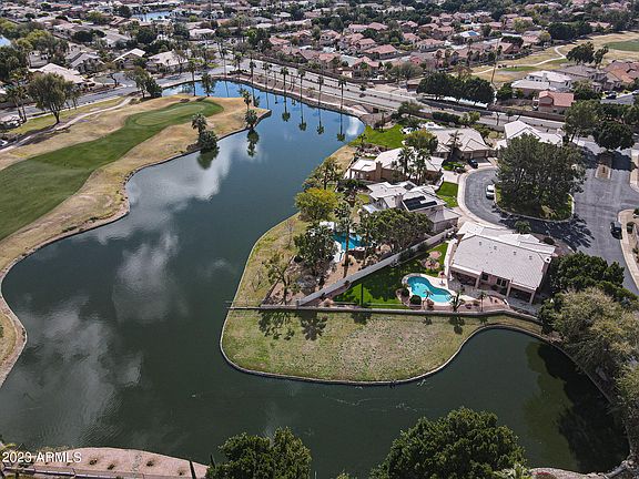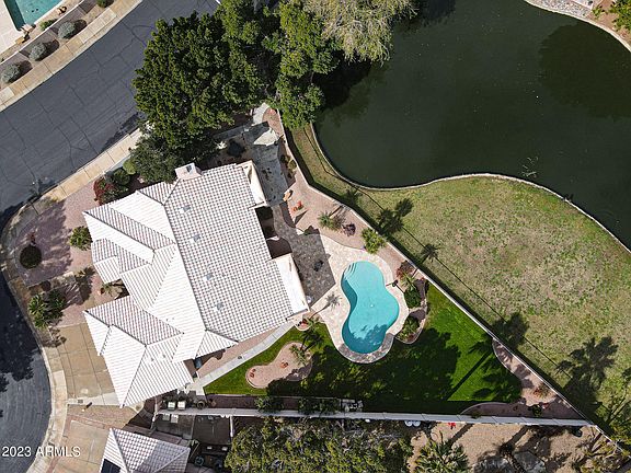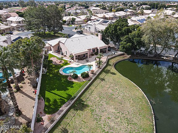 Corner, 1/4 acre+ lot on the waterfront in the highly desirable community of ''Top of the Ranch''. This North Glendale community is highly sought after for its A+ rated schools, golf course and Tbird Mtn. The backyard oasis includes a sparkling pool, travertine pavers, large grass area, 2 covered patios, electrical along the back fence and 180 degree views of the lake and Thunderbird Mountain. There is a direct view of the lakes waterfall from the backyard adding to the never-ending serene ambiance. This 3 bed/2bath home has been maintained, loved and cared for by its original owners and is ready for YOU to reap the benefits and carry on the pride of ownership. Builder-spec bonus room with separate entry is pre-plumbed for a sink. This charming gem is a beautiful find in a beautiful area!