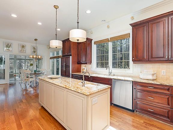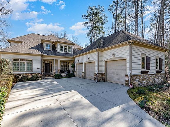 Governors Club estate PLUS phenomenal features: Extra half lot for PRIVACY or future gardens and paths or your own pool in the highly coveted n'hood of StoneBrook! Also, huge, unfinished space on Lower Level. If you always wanted a place for a golf simulator, hobby, action painting, kids free play area. Workshop area. THREE-car garage. Plus, a possible 5th bedroom! Classic and luxurious describe this wonderful estate with vaulted ceilings and walls of windows. Beautiful kitchen, open to casual dining area and Sun Room. QUALITY custom built. Lovingly maintained. Open architecture with glorious sunshine! Live on the Main level. Beautiful deck so you soak up sun rays. Second level with three bedrooms! (Or Two bedrooms and an Office). VERSATILE Lower Level w/Family room (OR potential 5th bedroom!)and full bathroom. . Porch to enjoy the NC sunshine. Located in the gated Governors Club, w/27-hole Jack Nicklaus Signature Golf course Stroll to Stone Brook pool, tennis, Pickleball. Close to UNC, RTP, airport, shopping ,culture, and great medical.