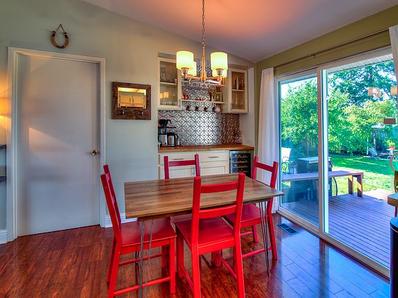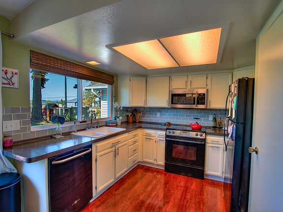 Tucked in the heart of Anacortes this one story home will surprise you with love and care. Curl up to your wood burning fireplace in the living room that opens to the dining with mini wine bar. 4 bedrooms, 2 baths. Recently updated kitchen, flooring, white trim & doors. Two car garage and extra parking out front. Gardeners delight with a fenced in back yard, fruit trees, shed & a chicken coop. Entertain on the summer nights on your large deck or watch the sunset over Fidalgo Bay from your treehouse. Walk to the forest land trails, schools & downtown.