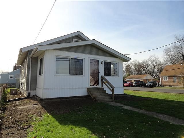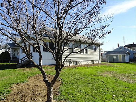 What a great opportunity to own a cozy two bedroom ranch that's spotless and nicely updated. Outside there's new vinyl siding with blown-in insulation, sewer line out to street, replacement windows, C/A, detached garage and covered back patio. The kitchen has new laminate flooring, ample oak cabinets, oven, refrigerator and dishwasher. The carpeted 3 season enclosed front porch adds 133 sq. ft and the floored attic has some good storage. Updated electrical, wiring, plumbing, fresh paint. Plain Local Schools. Much cheaper than rent.