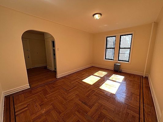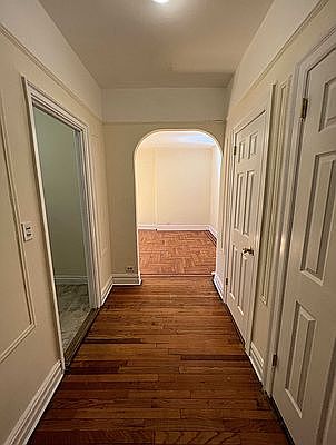 large renovated one bedroom w cherry wood kitchen cabinets, hard wood floors thru out, many large closets, eat in kitchen, very sunny apt in luxury elevator building near express trains, buses, stores heat and hot water included
