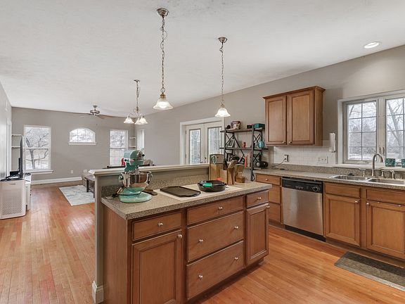 Welcome to this spacious 4-bedroom, 2.5-bathroom home with an office on the main floor, sitting on two lots totaling 1 acre on the outer edge of Heartland Hills. Enjoy the perfect blend of country living with modern conveniences. No well or septic needed! This energy-efficient home features geothermal HVAC, keeping utility costs low. The full basement includes a rough-in for an additional bathroom and an egress window, with two rooms started for the next owner to finish if desired, making it easy to add a 5th bedroom. Step outside to enjoy mature trees, a fire pit, and stunning sunsets from your front porch. With no subdivision covenants, you have the freedom to make this property your own!