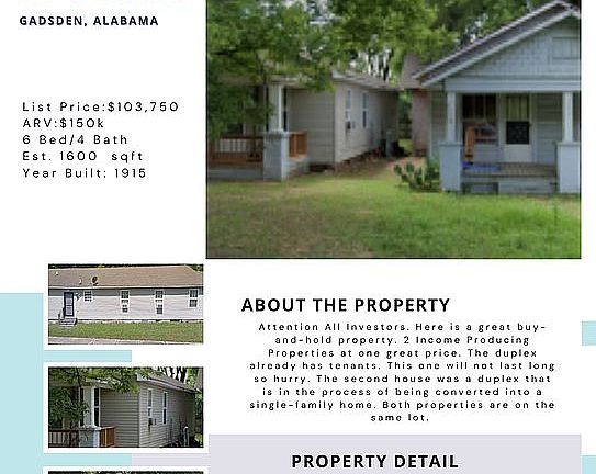 Price Reduced Now Accepting Terms: Submit the best and highest offer by Sunday Midnight. The best offer will be accepted Here is a great buy-and-hold property. 2 Income Producing Properties at one great price. The duplex already has tenants. This one will not last long so hurry. The second house was a duplex that is in the process of being converted into a single-family home. Both properties are on the same lot. Call today for more details. **Buyers do their own due diligence *Seller of this property either owns or has an equitable contractual interest in the properties marketed *Seller has exclusively relied upon the information listed within the MLS, County Assessor’s office, and Property Tax office to determine all measurements including lot size, square footage, number of bathrooms, number of bedrooms, number of total rooms, zoning, permitted and prohibited uses, construction materials, parking, year of construction, and all other pertinent data relating to the physical improvements and land area of the subject property. Buyer acknowledges and accepts that the seller makes no representations and warranties of any kind, whatsoever, as to the actual conditions that may exist within or around the property, and the buyer acknowledges that it has conducted its own investigation of these facts and is purchasing the subject property based upon its own conclusions. Buyer expressly acknowledges that it is purchasing the property in "as is, where is" condition. Jade Crown Properties LLC DISCLAIMER: This is an assignment of contract. A legally binding purchasing contract with a memorandum has been signed with the Seller giving this company exclusive rights to purchase the property. This company does not represent the owner. We are NOT brokers and do not represent ourselves as such. DO NOT CONTACT THE OWNER/SELLER without our explicit consent. Any attempts to renegotiate or make contact with the owner will result in legal action.