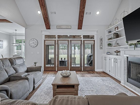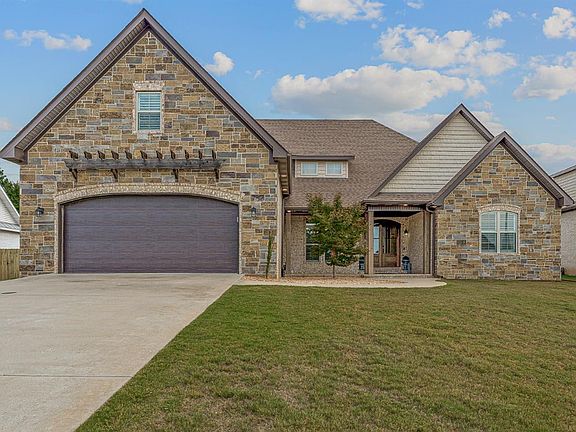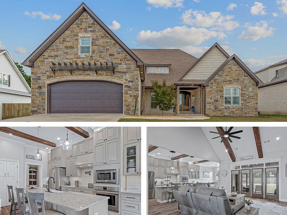 Located in Jamestown Manor within the Valley View School District, this 4-bedroom, 3.5-bath home offers a functional layout with three bedrooms on the main level and is just minutes from Craighead Forest Park. The vaulted great room with wooden beams and a stone fireplace serves as the centerpiece of the home, and French doors open to a screened-in porch that is perfect for enjoying cooler fall days. From there, you can step out to the private, tree-lined backyard with a new privacy fence, plenty of room for a pool, and a nice-sized storage shed. The kitchen is designed for both everyday use and entertaining, featuring custom cabinetry, granite countertops, stainless steel appliances, a large island with storage and seating, and an eat-in area. The home includes an electric flat-top stove, with a gas hookup available for those who prefer gas cooking. The master suite offers tray ceilings, a walk-in closet with built-ins, and a spa-inspired bathroom with soaking tub, dual vanities, and a tiled walk-in shower. Two additional bedrooms on the main level share a convenient Jack-and-Jill bath, while the upstairs bonus room with its own full bath works well as a fourth bedroom, guest suite, or office. Recent updates include a whole-house air purifier, new lighting and ceiling fans, new toilets and faucets in all bathrooms, new shutters in every room, freshly painted interiors, and top-of-the-line kitchen appliances. The garage has a new polyaspartic floor coating with transferable lifetime warranty, and new rock landscaping surrounds the property for easy maintenance. This home combines space, updates, privacy, and location, making it move-in ready for its next owner.