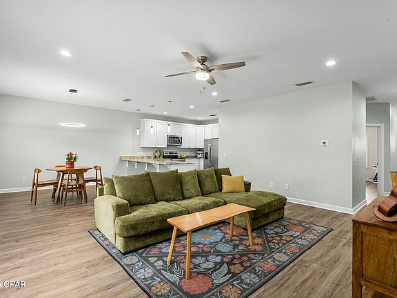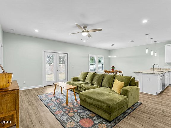 Central to everything! This perfectly delightful home is nearly new and has quality finishes you'll appreciate for the price point! The open living area is tucked on the back side of the house and has French doors that lead to the big back yard. Open the doors, enjoy the sunshine, and visit with company while cooking up a meal. The kitchen has granite countertops, a wide breakfast bar, stainless appliances and great lighting and the dining area can accommodate a large family table if you wish. The primary bedroom has a great walk-in closet, and the en suite bath has fresh clean finishes, a tile shower and double vanity. Escape outside on the cool nights and have a soak in the hot tub or just relax in the privacy of your fenced yard. The kids, furry or not, will enjoy plenty of room to play. Near FSU PC and Gulf Coast State! The location is ideal for a quick shopping trip, a hop over the Hathaway Bridge to the beach, or a few minutes to Historic Downtown or St. Andrews. This one really is a charmer so set up your showing soon! Measurements are approximate, buyer to verify if important.