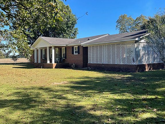 Brick home on 6 acres in the country! Mitchell County, Pelham, GA. Kitchen with BF bar, dining area, and living room all in a huge open area! Nice masonry fireplace. Master bedroom with master bath, two nice sized guest bedrooms and a hall bath. Laundry room. Double carport. Some large shade trees. Acreage extends into plowed field behind.