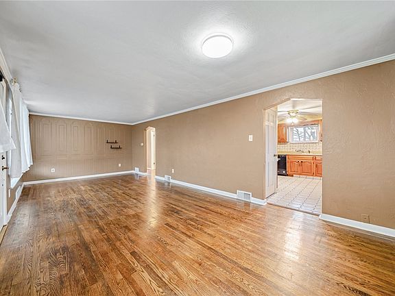 A perfect starter home in a quiet neighborhood within driving distance to downtown Pittsburgh, the shopping district of Robinson, and the airport! This solid brick ranch is an ideal canvas to make your own, featuring 3 nicely sized bedrooms, full bathroom, living room / dining room combo and spacious kitchen with all black appliances. The first floor has access to 2 covered porches (front and side) and an easy to maintain backyard with shed. Original hardwood floors are throughout the living spaces and bedrooms and are in move-in condition. The basement is finished with a neutral toned tile and is a great option for a game room or gym. The laundry and an additional full bathroom are also located in the basement, as well as storage and the one car integral garage that connects around back via the cement driveway. An additional perk not to be forgotten is this home has a new roof!