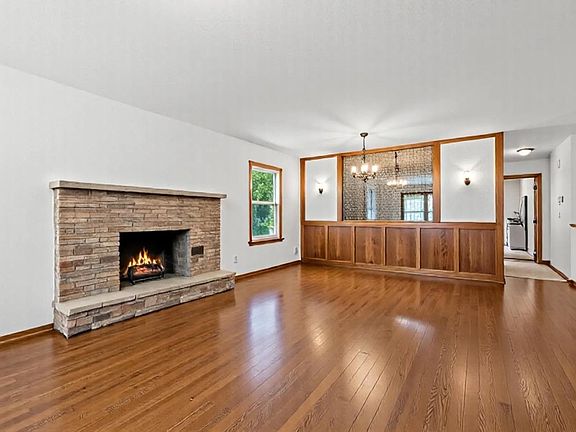 Deep fenced backyardWood-burning fireplaceEat-in kitchenHardwood floorsScreened front porchWalkout lower levelBright bedrooms