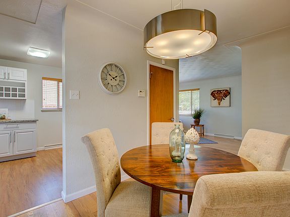 Loads of vintage charm in this well maintained four bedroom ranch home. Living room and dining rooms are finished with hardwood floors and new window blinds throughout. Bathrooms have been tastefully updated with neutral colors. Main floor has two bedrooms. Bright kitchen has newer white cabinets, granite counters, tile backsplash and stainless steel appliances. Finished basement offers an open rec space, two bedrooms, a wet bar complete with granite counters and a utility/laundry room. A bathroom can be easily added in the basement with stand up shower. Oversized two car garage with alley access and a parking pad. Rear yard is great for entertaining with a large covered patio, low maintenance landscaping with sprinklers and a garden area. Quiet neighborhood, close to Downtown, Highlands, new Edgewater Public Market, Crown Hill Park and Sloan's Lake. Walking distance to restaurants, shopping, and more!