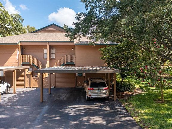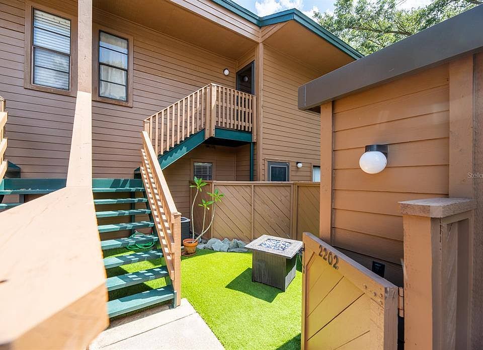 Unwind in this Tranquil 1 bed, 1 and a half bath condo, with versatile den/home office/or possible 2nd bedroom. Your 2nd floor end unit features a privately fenced courtyard with maintenance-free turf, firepit, and a storage shed. Entering the home you will fall in love with the 14 foot vaulted ceiling with beam and popular open floor plan of kitchen, living room, and dining room. Off this area is a large shaded screened in side porch that looks out into the community maintained oak covered field. Your primary bedroom shares this same relaxing view. The bedroom has 2 closets and connects to your full bath with a large L shaped vanity. Connecting on the other side of this bathroom is a half bath that is just off the home office or possible 2nd bedroom. Then back in the center of the home is your kitchen that is open to everything. It even has seating for 6 to 8 people at its bar top. You will be amazed at how much larger and airry this home feels compared to others. This pet friendly community provides a heated swimming pool, tennis/pickleball courts, high-speed internet, water/sewer, trash, exterior maintenance & painting, 1 carport space and guest parking, and plenty of open green space. This peaceful gem is walking distance to the World Famous Innisbrook and is just minutes from some of the best beaches in the country!