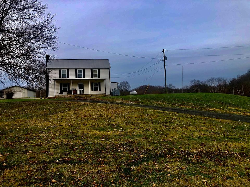 Wonderful farm house with many updates on 4.87 beautiful surveyed acres with detached garage and pond. Home has open great room to kitchen, three bedrooms, and two bathrooms, separate living room/could be fourth bedroom. Home has central HVAC. With a classic setting off the road with circular drive, this property is sure to please...
