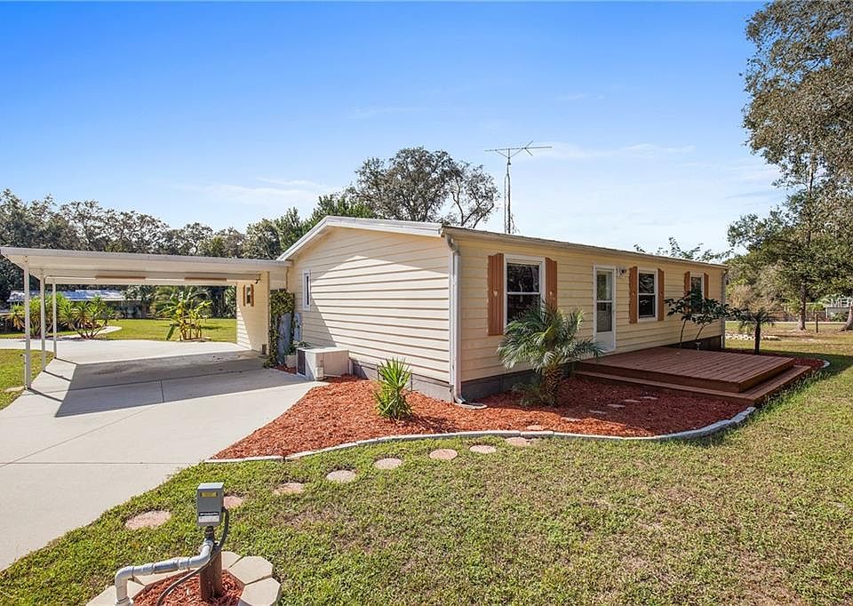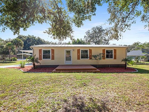 Check out this cute 3 bed 2 bath home in the country but still close to the Villages! The home sits on nearly 5 fenced in acres and boast 2 detached garages, circular drive, large storage shed, a few storage containers, an electric gate, carports, sprinkler system, and an above ground pool! As you enter the home you will find the living room and dining room combo with the kitchen off to the left. To the right you will find the 2 spare bedrooms. Across the living room you will find the Master Bedroom with a nice size master bath. Out of the dining you will find a sliding glass door that leads to your newly carpeted enclosed lanai and oversized laundry/storage room. Schedule your private showing today!