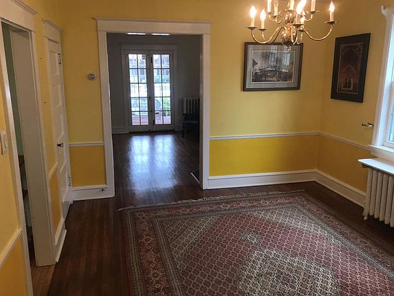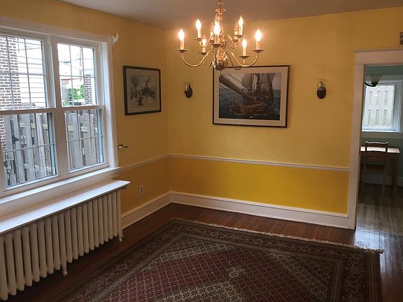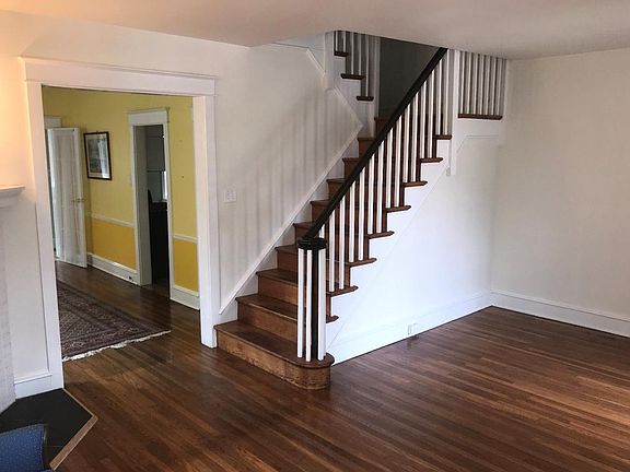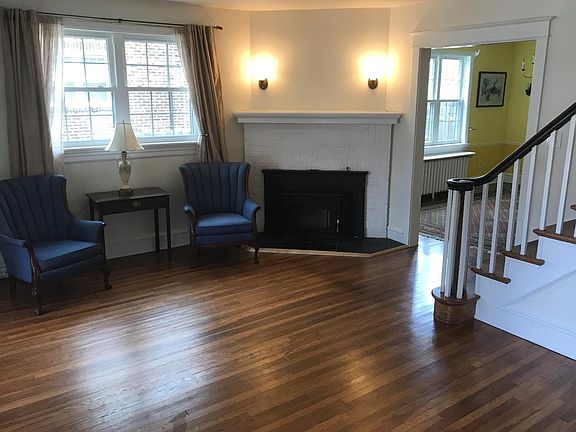 Charming brick four bedroom, 1.5 bath twin in the heart of The Triangle neighborhood. Gleaming hardwood floors throughout. Main living room has wood stove that can warm the home on even the coldest days and keep your energy bills low in addition to the windows being replaced. Front screened in patio porch for relaxing. Large dining room that leads to a work/desk area and half bath. Updated kitchen with new stove and butcher block counters. Second floor you will find the master bedroom and large walk in closet, 2 additional bedrooms and full updated bath. Off one of the back bedrooms is a upstairs deck. There is a large living area on the third floor that can be used as another bedroom or family room with an adjoining smaller room. Home has been meticulously maintained. Out back is another patio, garage, off street parking and access to the basement. Home is close to all major highways and shopping. Come be a part of The Triangle today!!!
