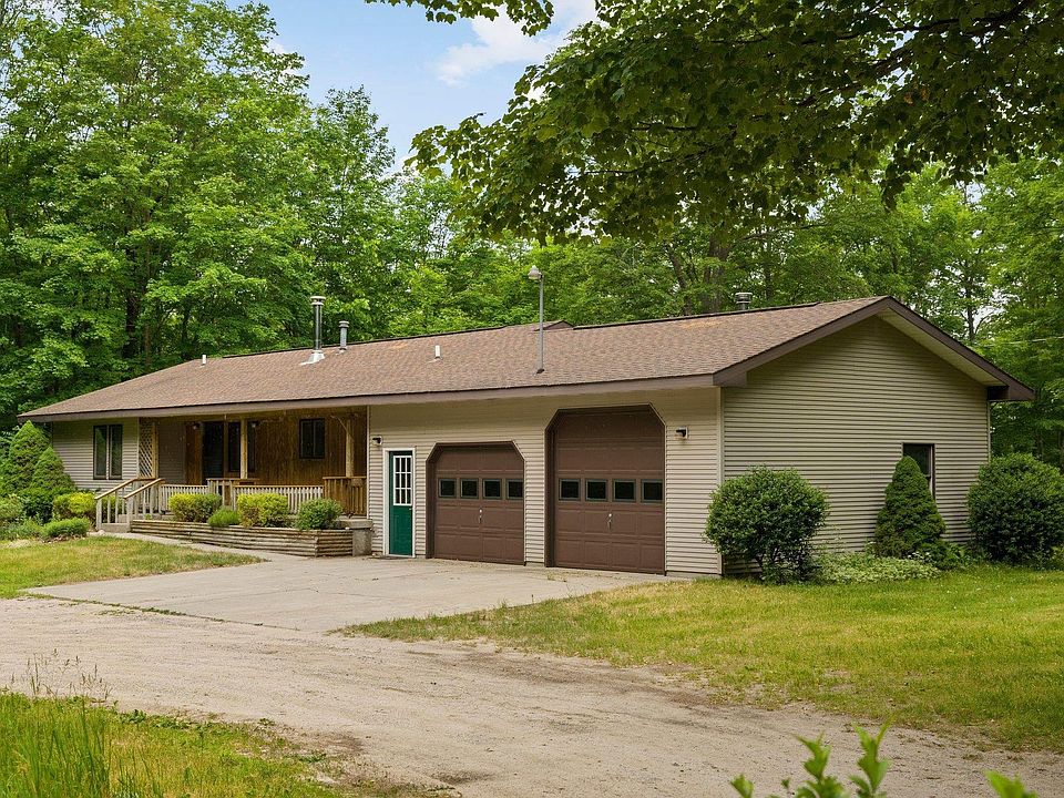 Custom 3-bedroom, 2-bathroom home situated on a picturesque 4.5-acre wooded parcel adorned with majestic hardwood trees. As you step onto the back deck, you'll be captivated by breathtaking views of the Sleeping Bear Dunes to the west. Whether you're sipping your morning coffee or enjoying a tranquil evening, this vantage point offers a serene and awe-inspiring backdrop. Inside, the main floor living area provides a comfortable and convenient layout with wood ceilings and skylights providing plenty of light. The primary bedroom boasts a private bathroom, offering a peaceful retreat within the home. This residence showcases quality construction, evident from the new roof installed in 2012 and recently replaced doors, ensuring long-lasting durability and enhanced aesthetics. The property also includes a 2-car attached garage, providing ample space for parking and storage, as well as an additional 24x24 garage for your convenience or parking an additional 2 vehicles. This property offers a rare opportunity to own a peaceful retreat with stunning views and thoughtful features.