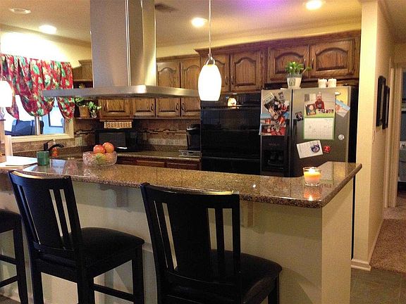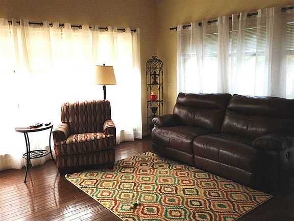 Beautiful brick wall in living room. New countertops in kitchen and bathroom, ceramic shower in master, heat and air is three years old, fresh paint, two water heaters, microwave and double ovens.