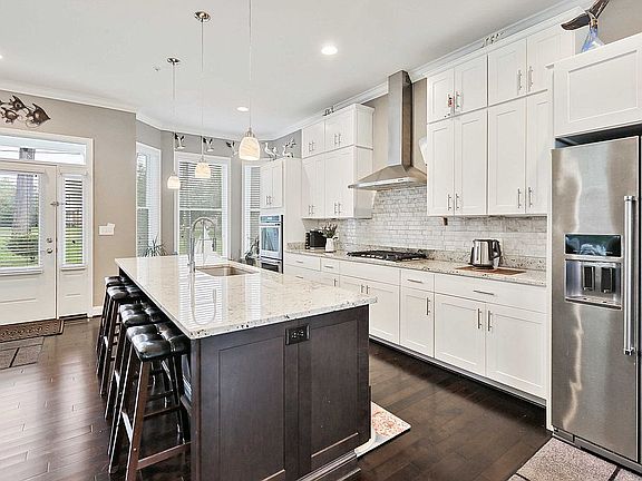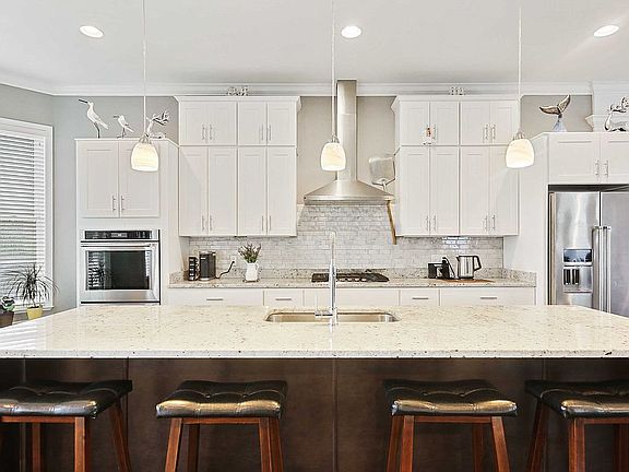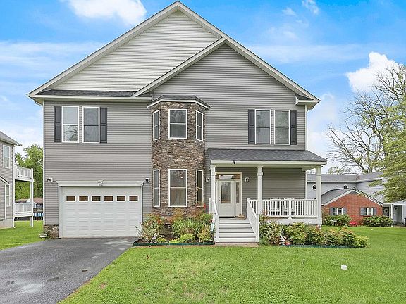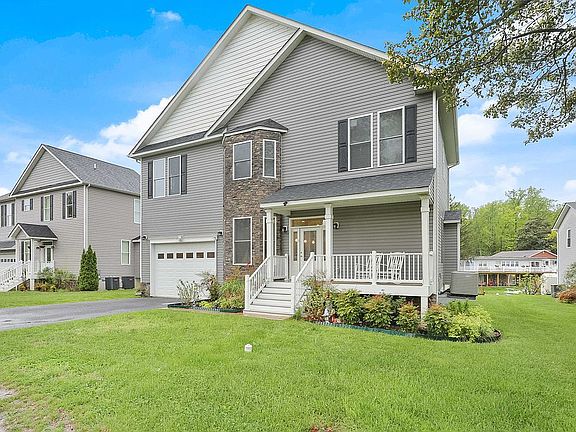 Stunning 4 bedroom, 3.5 bath waterfront home built in 2016! Open floor plan with gourmet white kitchen with large island that seats four, pendant lights, double wall oven, gas cooktop (propane), exhaust hood, granite counters and stainless steel appliances. 10 foot ceilings on first level with recessed lighting, crown molding, wood floors, coat closet with additional storage. Stack stone gas (propane) fireplace in great room with windows across the back for beautiful water views! Separate dining room on first floor. Primary bedroom with large walk-in closet, en suite bath with stand up shower, and sliders to second floor composite deck! Second bedroom with en suite bath and third and four bedroom with Jack and Jill bathroom. Additional access from fourth bedroom to deck. Second floor laundry. Pull down stair to large attic for storage. Composite deck off first floor, paver patio area with built-in fire pit perfect for summer entertaining by the water! New bulk head and boat lift. Two car garage.