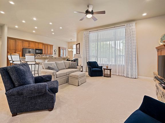 Looking for the perfect ranch style home in the Knolls? Here it is! Spacious open concept with formal dining, gas fireplace and custom built entertainment center. Split bedroom plan with in floor heat, 3 BR, 3 baths plus office and large 3 car garage. Large formal dining right off a kitchen that you will love. 5 piece master suite bath, huge walk in closet and private patio access off the main bedroom. Everything you need to entertain with covered patio, built in grill and fridge and your own putting green including professionally landscaped yard with dual irrigation systems all in a low maintenance design! This home is immaculately clean and ready for you to move in.